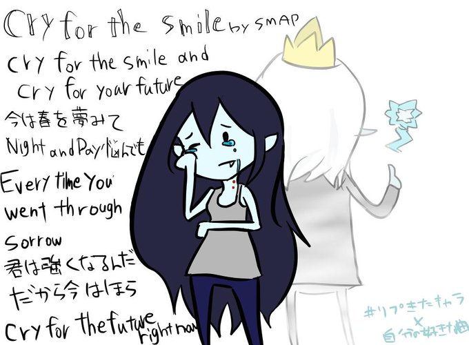 #リプきたキャラx自分好きな曲の絵かく ❶@mofumofu1239 さんから、アイスキングとマーセリン。 アイスキングというか、サイモンになってしまいましたが… とても綺麗で元気の出る曲です。 サイモンがマーシーに歌ってたら泣く。