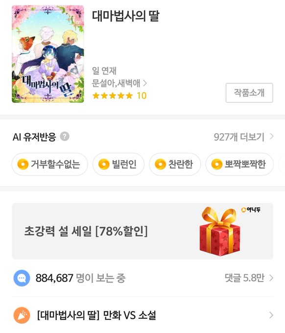 소설 원작 카테고리에 있어서 직접 검색 하는 거 아니면 카카오웹툰에서 법딸 찾기 힘드셨을텐데... 독자분들께서 법딸을 잊지 않고 찾아주신 덕분에 로판 랭킹에서 노출이 되고 있어요. 정말 정말 감사합니다!!!