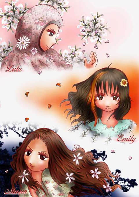 #あなたと出会ったころの思い出 #頭の中のわが子 15.04.06~。社会復帰後では初のカラード。 桜の似合いそうな3人。特にルルさんはイスラームの平穏を願い、平和の桜が咲くよう思いを込めてお呼びした。エマさんはテーマカラーを意識。