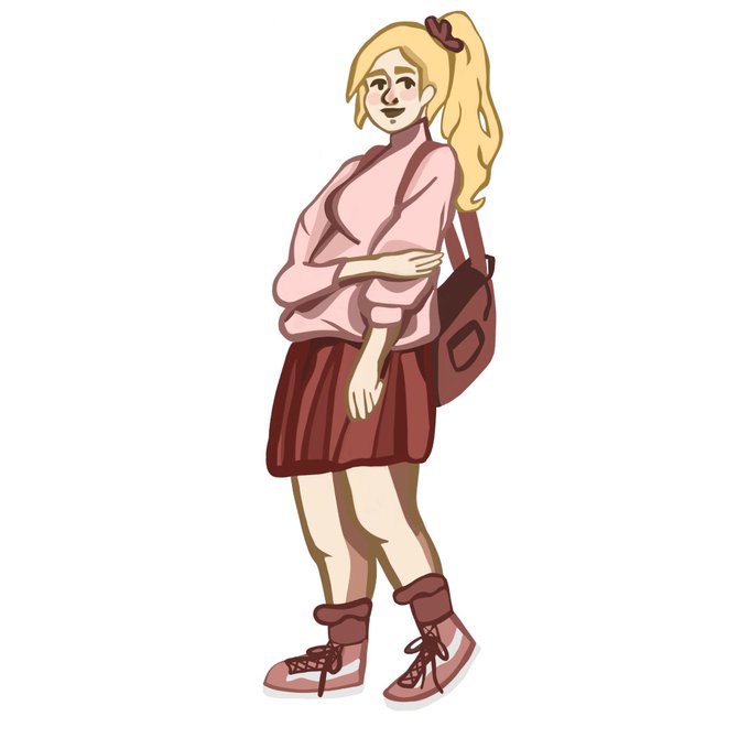 A WIP of the pink schoolgirl sticker! There’s a few things I wanna fix but she’s looking good 😊
