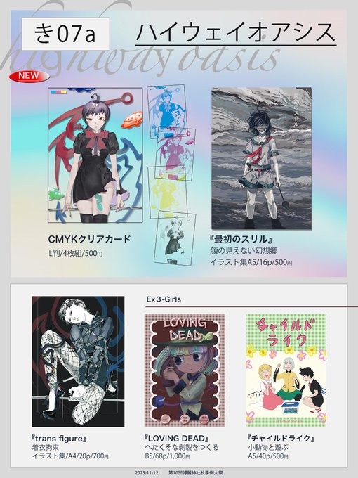 ぬえのCMYK4枚組クリアカードを作りました。重ねたりズラしたりで色が現れます。