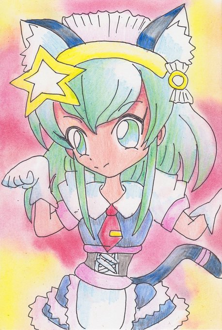 100均画材はがきキュアミルキー #アナログ #色鉛筆 #100均 #スター☆トゥインクルプリキュア #キュアミルキー #羽衣ララ #オリジナル衣装 #猫耳メイド #はがき https://t.co/DkzfpuzisH