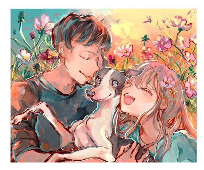 #あなたの春を待ってる作品を見せて 【人物と一緒】 大好きなペットと一緒にいる瞬間を描きました。