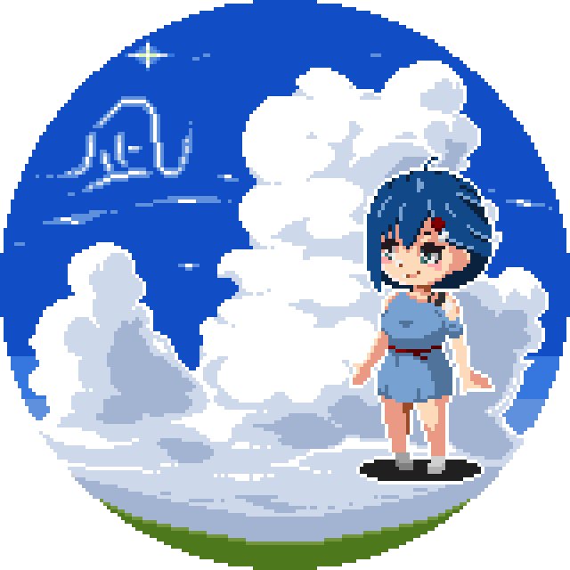 昨日配信にお邪魔させてもらいました、凪空あさひさん(@Nagisora_Asahi)のドット絵アニメです~ ええ感じのお空が描けたかな? #pixelart #ドット絵