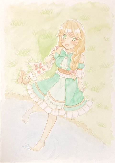 湖で休憩する女の子を描きました!