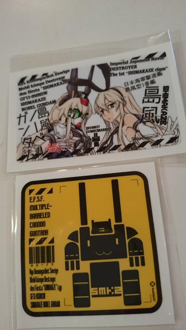 島風ノーベルガンダム @mayohineko コラボ同人キーホルダー的なプラスピクトグラム風連装砲ちゃんガンタンクステッカーのセッとの、先行頒布分完売しましたー。残りは三日目の俺のスペース(東ク-59b)にて頒布致します!