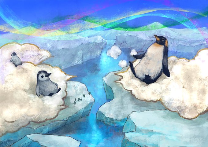 オウサマペンギンとコウテイペンギン 応援…と肯定ペンギン。 #イラスト #創作の狼煙 #絵描きの輪 #絵描きさんと繋がりたい