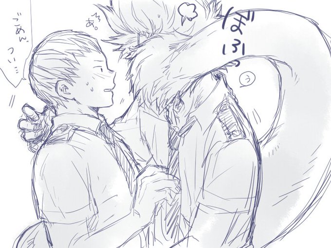 【お題箱投函ネタ】 珍しく起きる順が逆だった心尾らくがき… 「寝起きで髪の毛がぼさっとしてる尾白くんが見たいです!」というお題投稿ありがとうございました…!