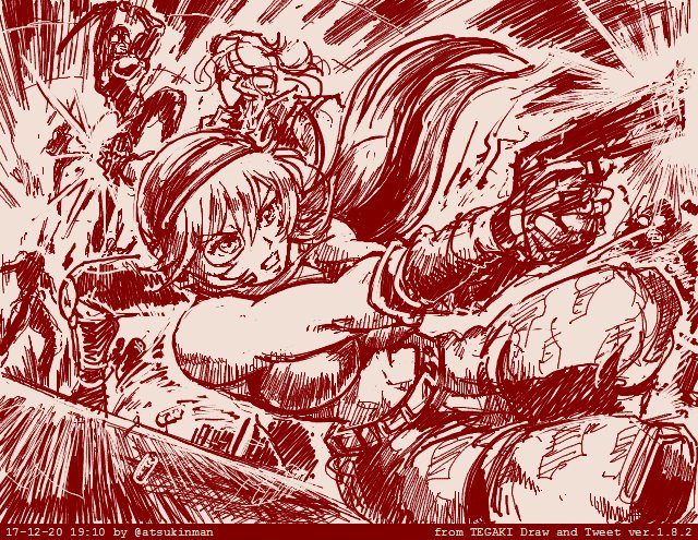 やけくそで「魔界村」です。着地にアンデット、後ろから有馬さんともう絶望の状況です。最近チャーリーさんが魔界村チャレンジしてるのでこれでも喰らえ!ってな気分で描いてますw ミューティションネイションは描かんよ! #tegaki_dt
