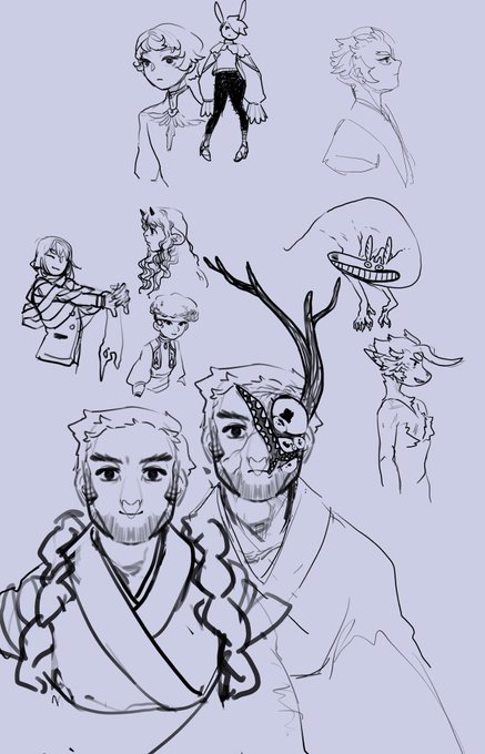 @soulartshares most recent things! I haven’t had the time or energy to finish much outside of commissions lately so they’re mostly unfinished. I draw lots of original characters from my personal worldbuilding project.