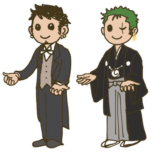 フォルダに単体のお姉さま絵があった→ 黒服コックを追加してみた→ 余白が気になった→ 余白を兄弟で埋めた という計画性のない流れ