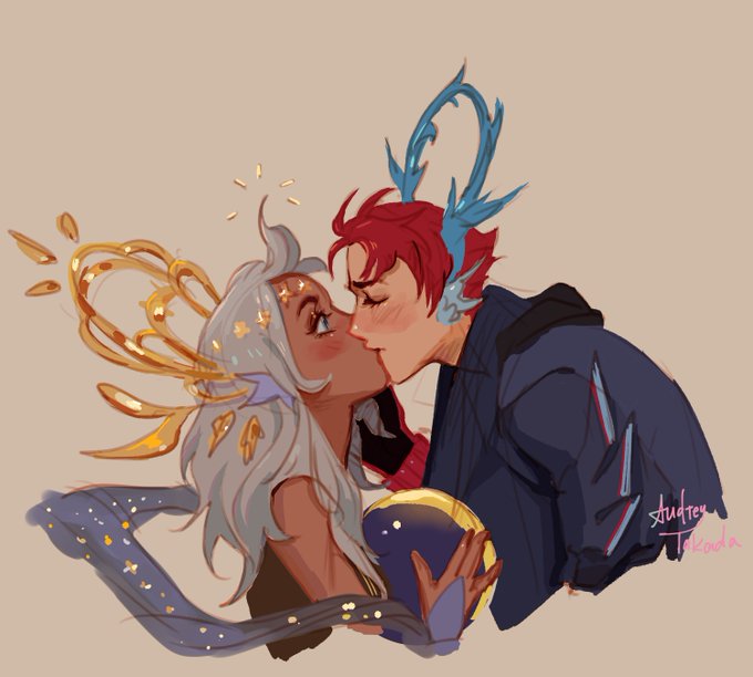 Really felt in the mood to draw some fluff... so here's a crack kiss between my boy Raph and @jowanoodles 's gal IPO!