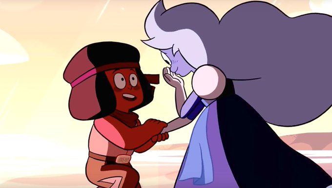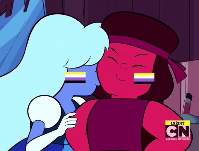 the third t4t ship of the day is ruby and sapphire from steven universe! they're both canonically nonbinary :]