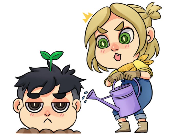 "What the-?! Otabek?!!" Another one out of our six "Yuri!!! On Ice: Gardening Boys" stickers sprouting @AnimeNEXT ~ More to come soon 🌱✨