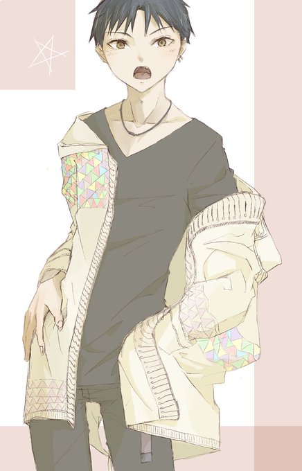 #絵描きさんと繋がりたい #冬の創作クラスタフォロー祭り #絵柄が好みって人にフォローされたい ストライプ柄シャツ。 と、サイン風。