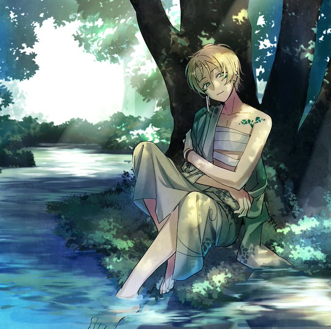 お題箱より、木陰の蛇衣装ゆうくん🐍