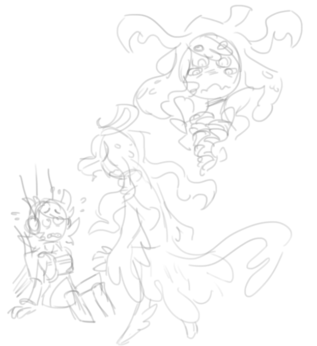 i have some weird concept art of the alien - its premise is if it eats you it has your consciousness in its mind for a brief span of time (last pic is soooo crusty and old ugh dont look at that one too much )