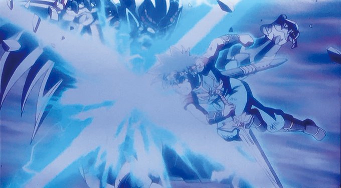 お互いの必殺技で決着、ダイの今までのアバンストラッシュではハドラーの超魔爆炎覇には敵わない。だからこそ大魔王バーンとの戦いの為に編み出した、新たなアバンストラッシュを使う時!ダイは闘気を飛ばすA (アロー)タイプのストラッシュを放ちます!