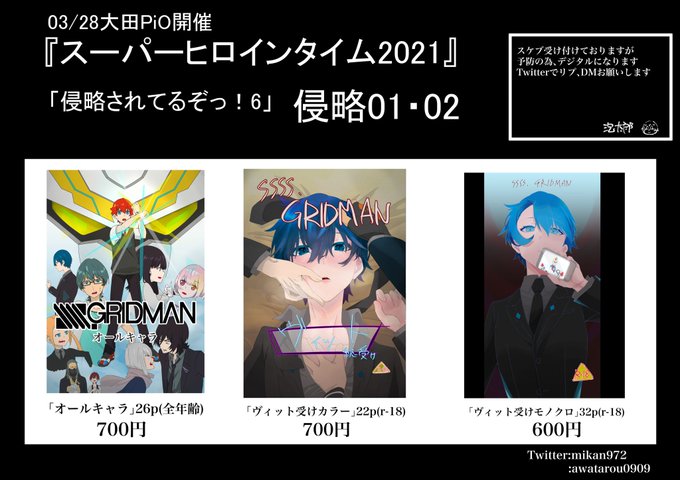 「スーパーヒロインタイム」3/28大田pio グリッドマンオンリーイベント 侵略されてるぞっ!6 侵略01・02 今回は時間いっぱい入れると思うので楽しみです