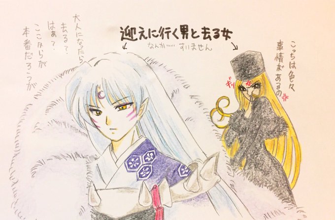 過去の殺りん絵を探したらほぼネタ絵しか無かった😱そのうちの一枚は殺生丸とりんならメーテルと鉄朗のコスプレ出来る!?と思いついた時の絵って言う。丸さま、しれっととんでもない事やらかしそうな気がするのは私の気のせいでしょうか?