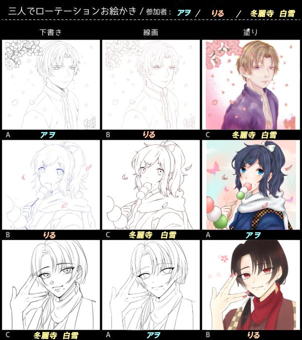 #3人で下書き線画塗りを交換して絵を完成させる るーりん(@Riruchat)と白雪さん(@whitesnow_A2)と一緒にさせていただきましたー! 油断とは違う雰囲気になってとても楽しかったです🙌 一緒にしてくれた2人本当にありがとうございました!