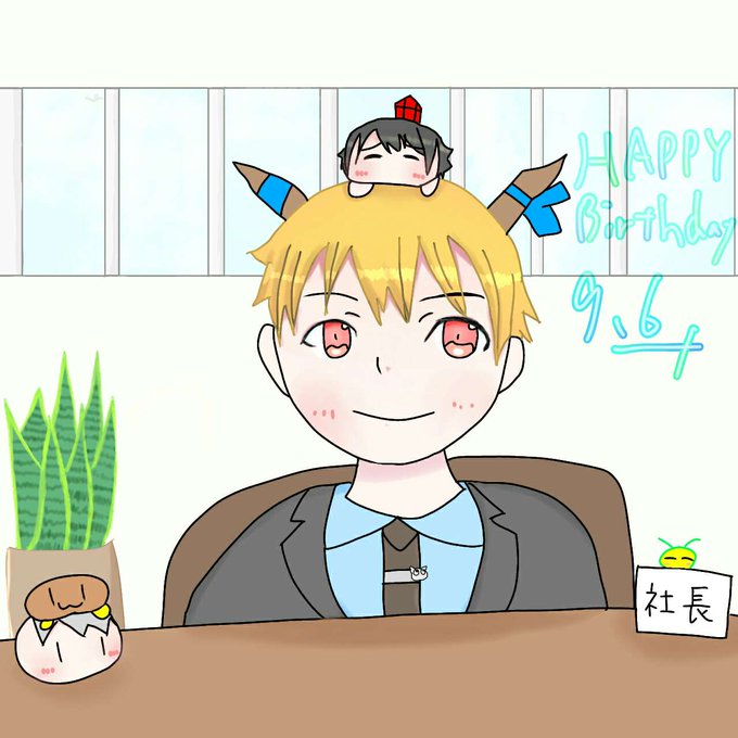 酒桜社長お誕生日おめでとうございます!!!!🎁🎂 チーム退職届の皆さんも喜んで(?)お祝いしてるそうです!!!! また四人の配信お待ちしております!!! 改めておめでとうございます!!!! #酒桜のイラスト