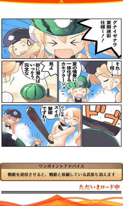 先日公開したVer.1.0.9から計4種類の新しいロード画面が追加されました。本誌でおなじみの「シャル&ゼナ劇場」をぜひゲームの中で確認して見てください★ #あくしず戦姫