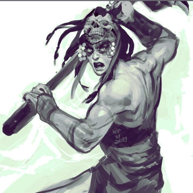 Barbarian woman wip closeup. Lookit this cutie patootie!! Also dem back muscles.