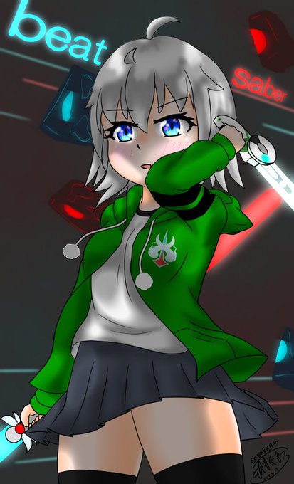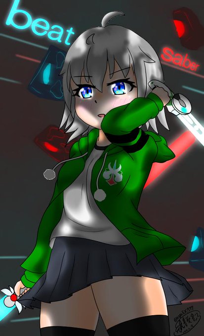 葵「流れてくる譜面は全部切る…!」 チャイロさんがかっこよかったのでうちの子の葵ちゃんにもやってもらいました('ω') バイオトリニティアでチートされましたwww_(:3」∠)_