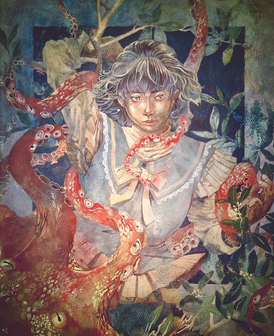 展示の告知してませんね… 島根で開催されている石本正日本画大賞展に出品しています!人物画です。会期は8/30〜9/25、よろしくお願いします。 https://t.co/47UixunFMN
