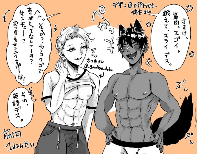 筋肉1年生描きました! むつきくん【@_goodbye_debu_ 】さん デザイン【@offritt_ 】さん #フォロD タグお借りしました〜