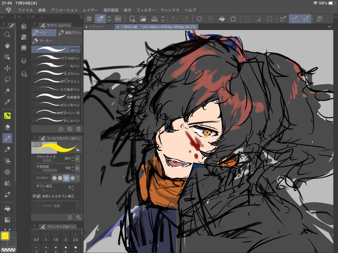 女の子の顔可愛く描けた気がする 以蔵さんは絶賛体が迷子