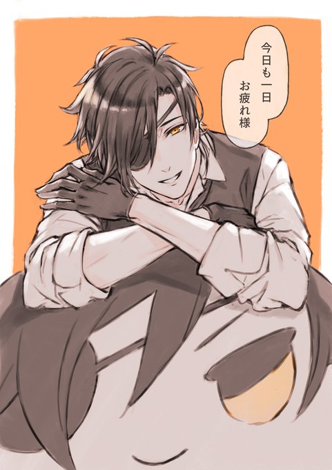 光忠さんで「今日も一日お疲れ様」を描かせていただきました!ビックなおもちと一緒にお家で待っていてくれたイメージで🌸