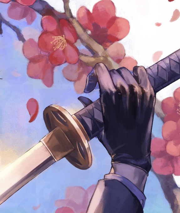 舞台刀剣乱舞を初めて見た勢いで衝動的に描き始めた光忠さんラフ。舞台での刀の構え方が印象的だった為、そのポーズイメージに梅の花を併せたいなと考えつつ構成。背景に和柄も入れたいところ。