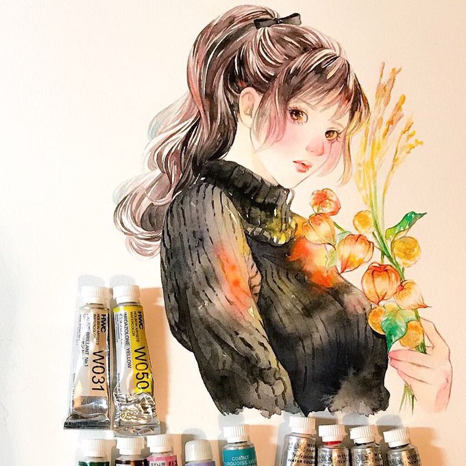 アクリルガッシュ、時々透明水彩を使って絵を描いています✍️