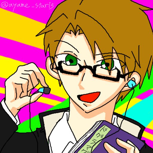 きぶっちー(@KeyBuchi1229)おめでとう!ということでイメージ絵。 イメージ:カラフル、音楽好きそう、ドグラマグラ(笑)、今は染めてないけど明るくしたら似合いそう、伊達眼鏡、学ラン