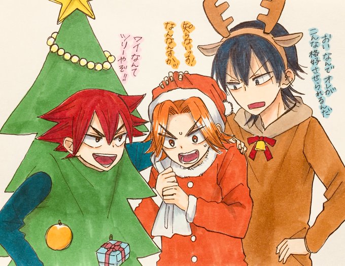 クリスマス絵のリクエストくれた方々、ありがとうございましたー!! ①東巻 ② 今泉と鳴子に怒られる(絡まれる)一差 ③青鏑 ④クソエリ雪成サンタ