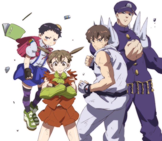 影なしアニメ風。 ケンカする翔馬と金次郎をとめるのがいつも大変な2人。