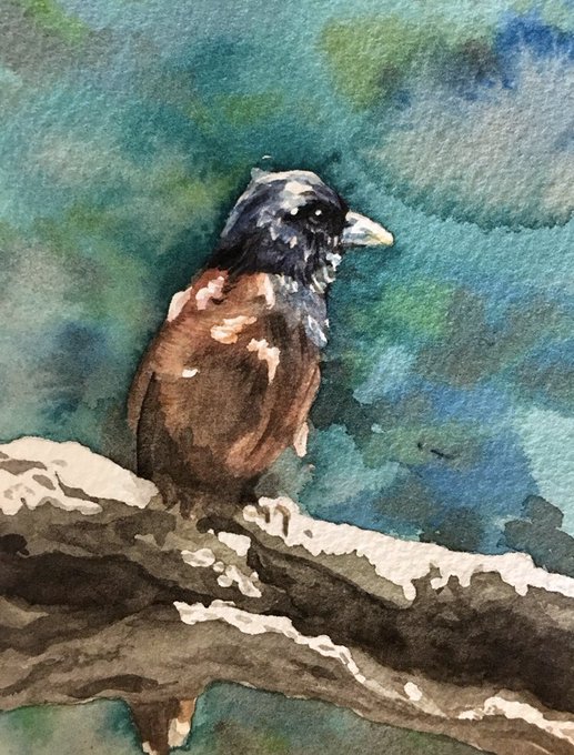 数年前に上野動物園でお見かけして以前描いた鳥さん。フワフワな羽毛に紺色の美しい羽根🦜 (マスキングの使い方が慣れてなくて雑ですが😅)