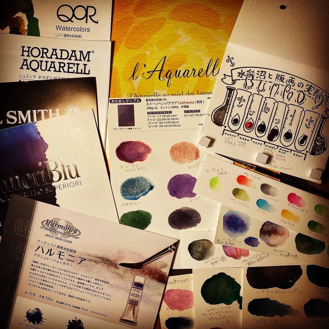 危険です。国内外の一流水彩絵具を試し放題です。そしてその絵具を使った〈湖沼の中のアトリエ〉林朝子 佐藤文音 二人展も。時間がいくあらっても足りません。2日目参加の方は是非早めの会場入りを。