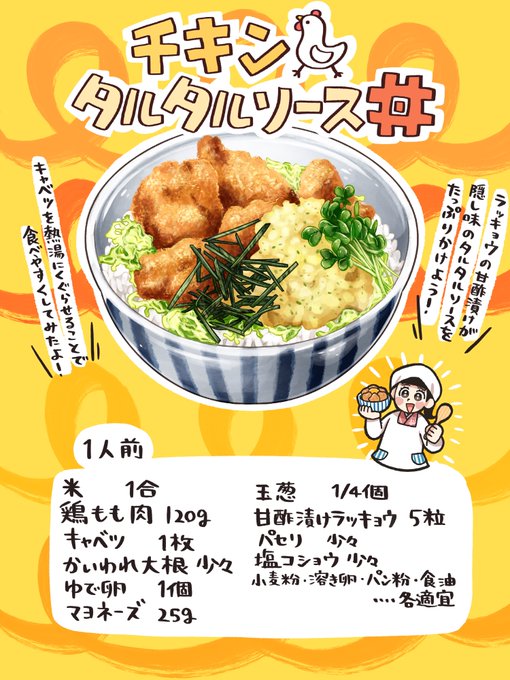 今晩の日替わりは、#大分 の「チキン・タルタルソース丼」だよ。