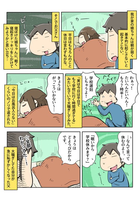 娘に寝起きドッキリを仕掛ける父 #一日一絵 #1Pマンガ #絵日記