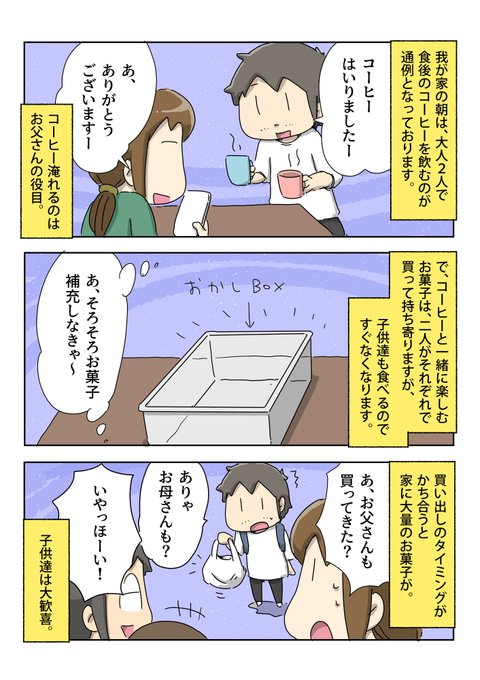TLがマリオで盛り上がってる中、今日は我が家のお菓子の話です。 (そんなに急にネタは変えられない) #一日一絵 #4コマ #絵日記