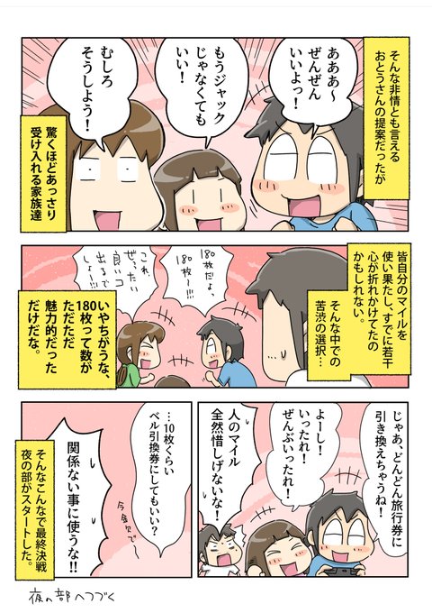 家族全員のマイル旅行券を結集させてジャックを引き当てようとした話④(夜の部) #一日一絵 #4コマ #絵日記 #あつまれどうぶつの森