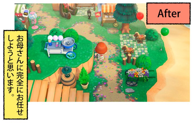 お母さんが島クリエイトに本気出すbeforeとafter #一日一絵 #4コマ #絵日記 #あつまれどうぶつの森