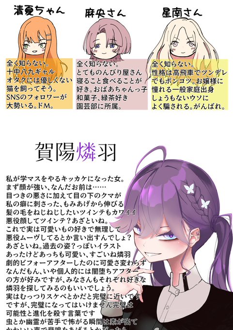 これから学園アイドルマスターを始めるので現時点での個人的な各キャラのミリしらイメージ 私はアイドルマスター自体をほとんど知らないです #学マス
