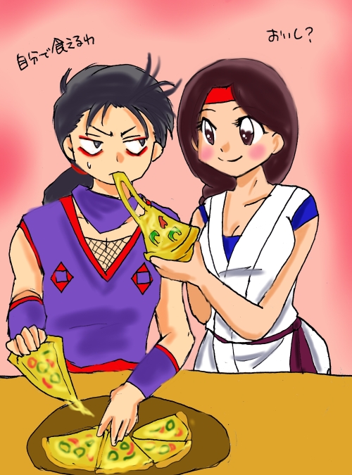 ピザをもぐもぐする影二さんといそいそお給仕ユリちゃん。KOF開催前にイベントやパーティみたいなの、あるのかなー。もしくは打ち上げでもいいんですけども。(主催者が爆発とかするから無理か…)
