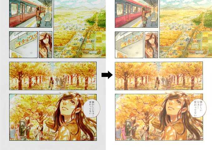 全ページ写植とリマスター作業終わりました。あのシーンもこのシーンもグッと原画の色味に近づいて、光の温かみとかちょっとしたニュアンスが反映されました😭