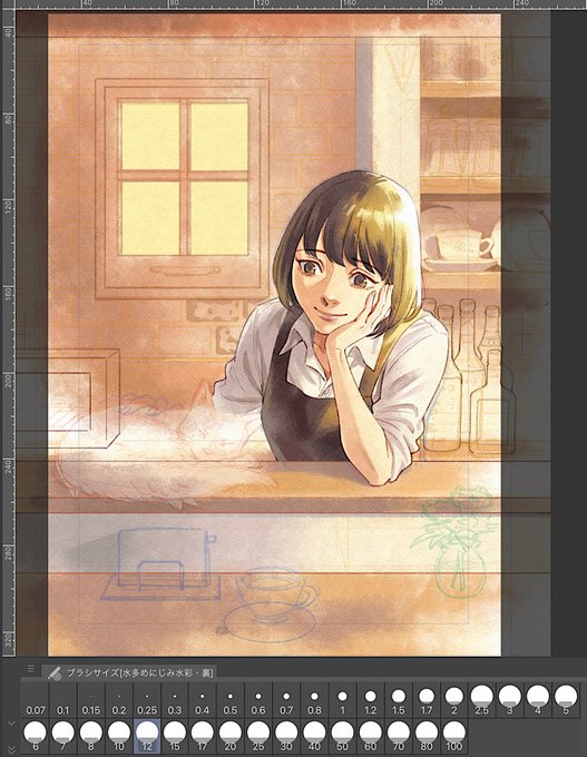 そして配信せずにもくもくと描いてたらここまで進みました😂後ろは線画消そうかな。アナログ的な塗りがやっぱ一番楽しいです。