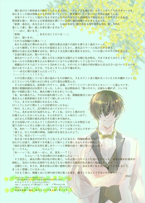 イラストはイソノさん(@all_choice_miss)に以前いただいた花婿桑名くんです。